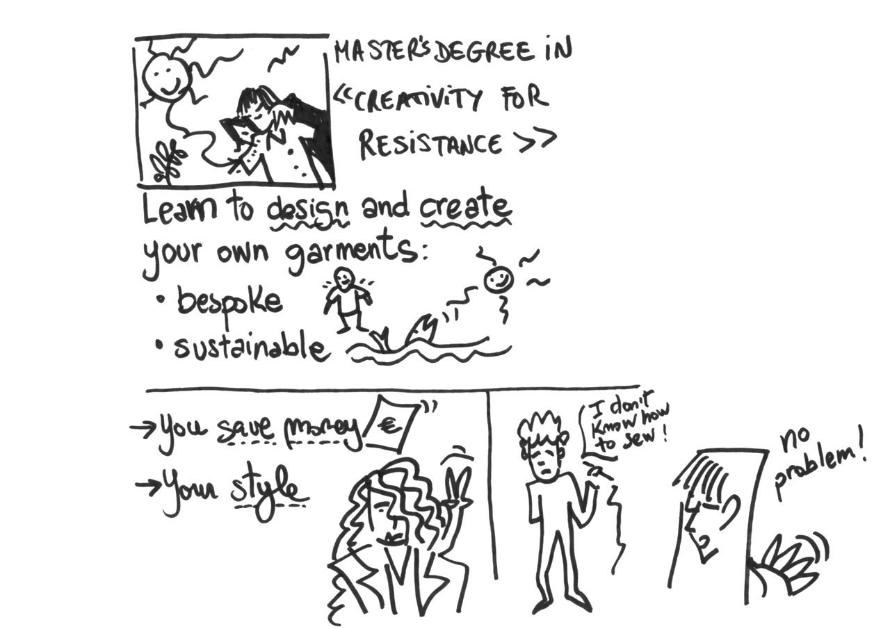 Imagine a world where you save thousands of euros each year without sacrificing your style. Would you like to never feel dissatisfied with your clothes again? With our Master's Degree in "Creativity for Resistance", you will learn to design and create your own bespoke and sustainable garments with minimal sewing knowledge